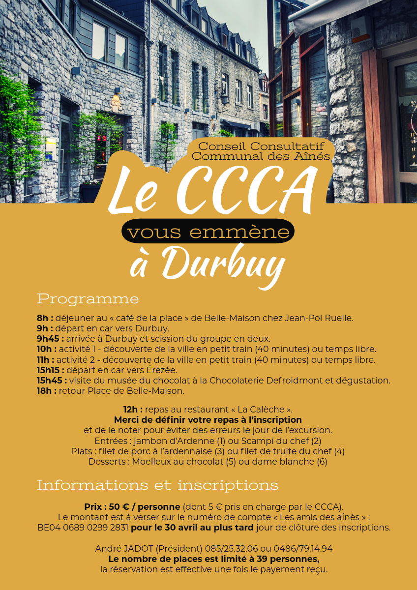 Cette fois, les membres du Conseil Consultatif Communal des Aînés de Marchin vous emmènent à Durbuy le jeudi 7 mai 2026.