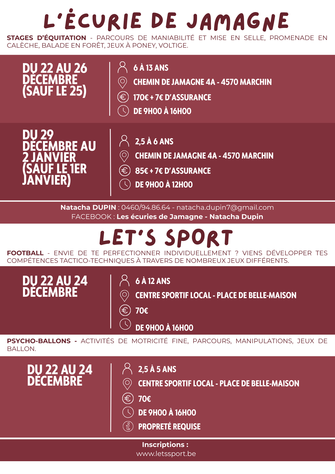 ► Stages et activités : Téléchargez la brochure des stages pour le congé d’hiver 2025.